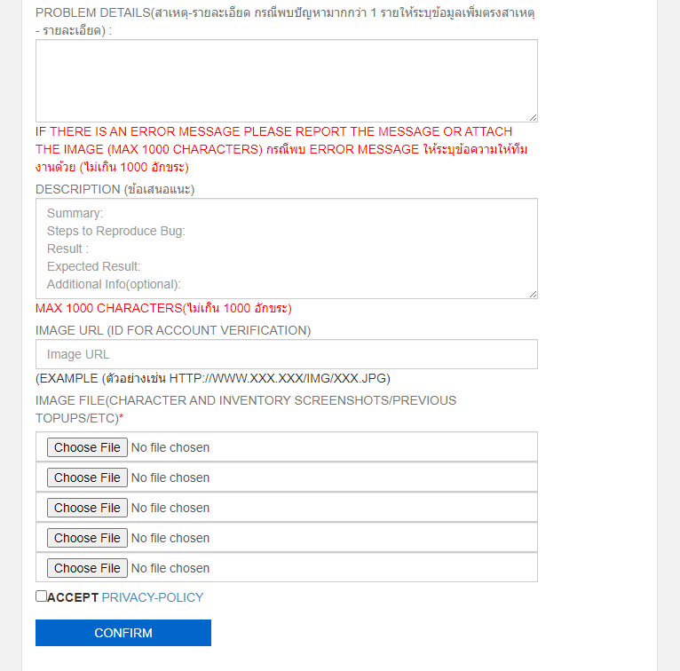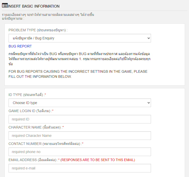 3. To complete the process, file a ticket with our E-support system (under “Bug Report/Bug Enquiry”) with the following details: