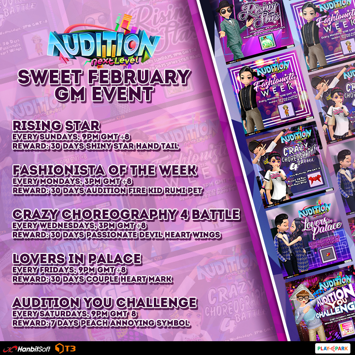 GM In-Game Events are held every Mondays, Wednesdays, Fridays, Saturdays, and Sundays. Watch out for GM Challenge for this month!