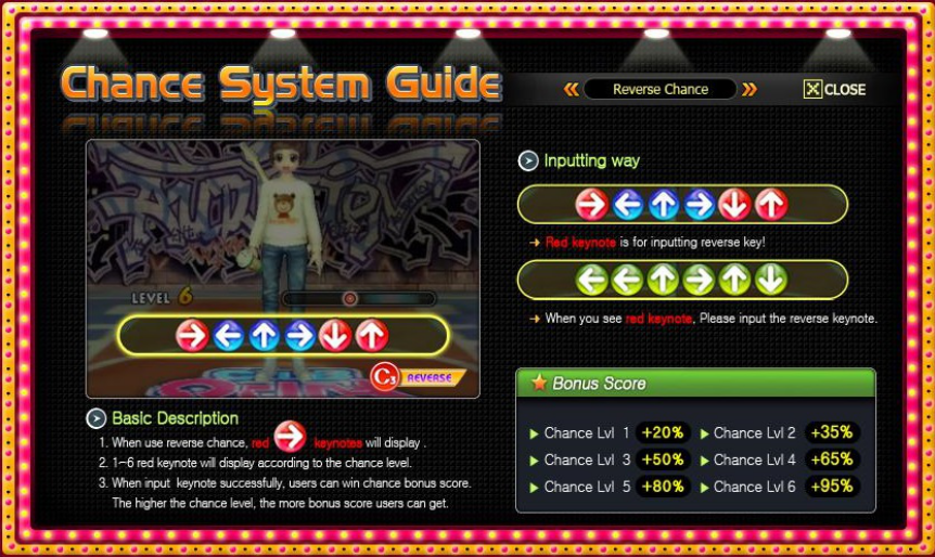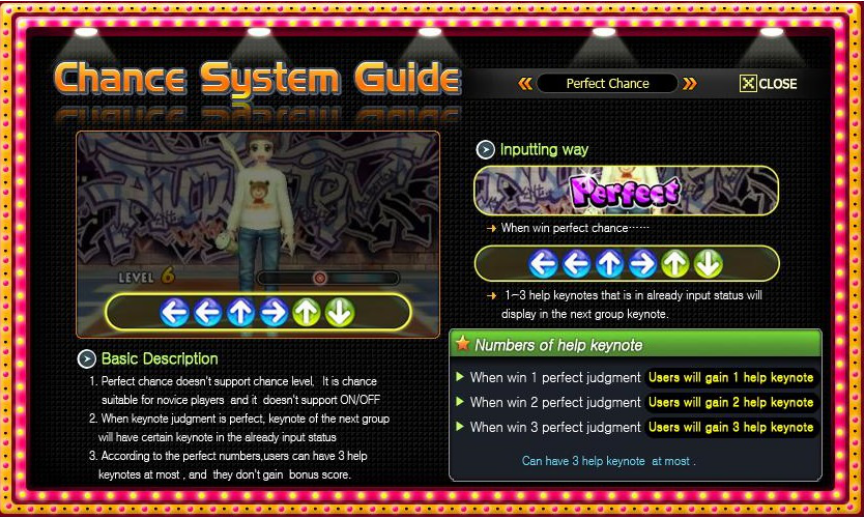 Beat Up – Where individual keys come in six keys divided two different sides. Players must press each individual key at the correct beat to get a higher score. At 100 Combos and 400 Combos, a bonus score multiplier will be given.