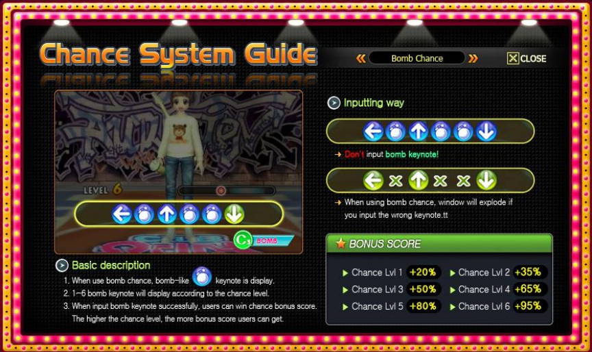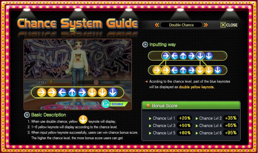 One-Two Party – This game mode features NPCs showing the players directions in tune to the music, then the players must imitate those moves along to the same rhythm to score points. In this mode, players have to listen to the numbers that they say or see the numbers that appear on the screen. For example, if they say “8,6,6,4,2” then you have to press 8,6,6,4,2 on the same rhythm that they said it. Sometimes at the end they will say “go” or “yeah”. When they say “go”, you have to press the spacebar or the Ctrl key, and when they say “yeah” you have to press insert, 0 or 5. A dance simulation will commence after a stage, where the moves of the dancer and the corresponding arrows will show up.