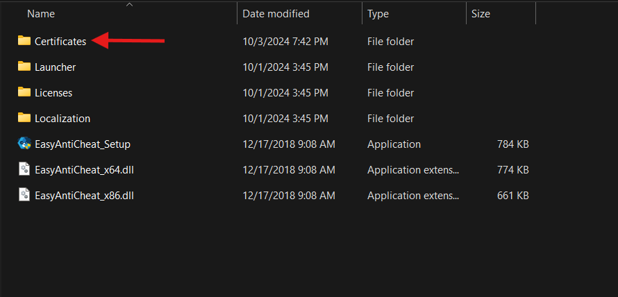 Open “EasyAntiCheat” folder