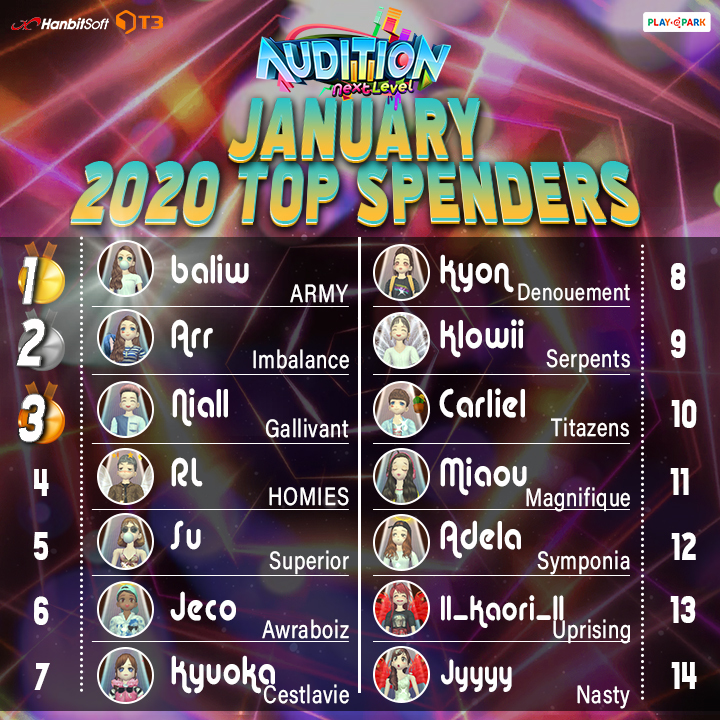 JANUARY TOP 14 SPENDERS