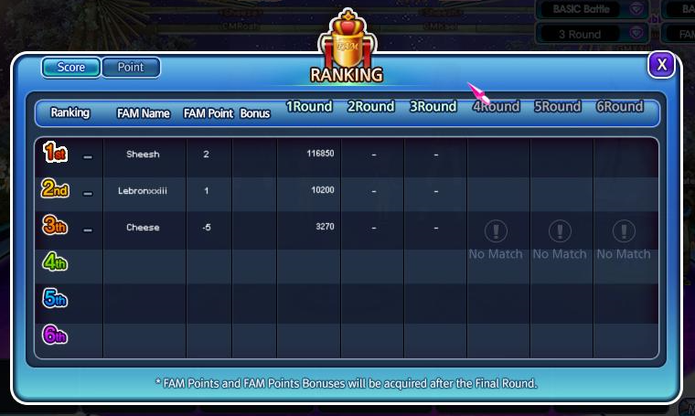 • FAM Points will be given once the Single FAM Battle Matches are already finished.
