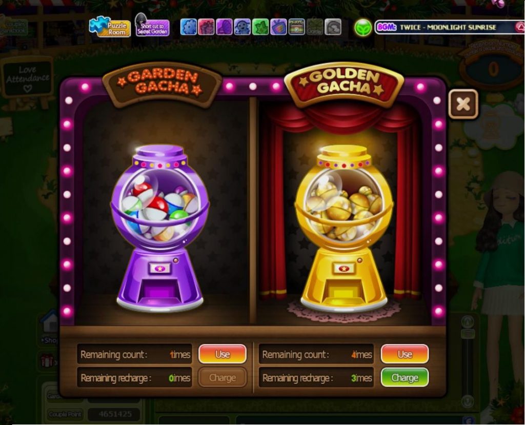 2Re-charge chance NoIndicates the rechargeable number of Garden gacha or Golden gacha chance