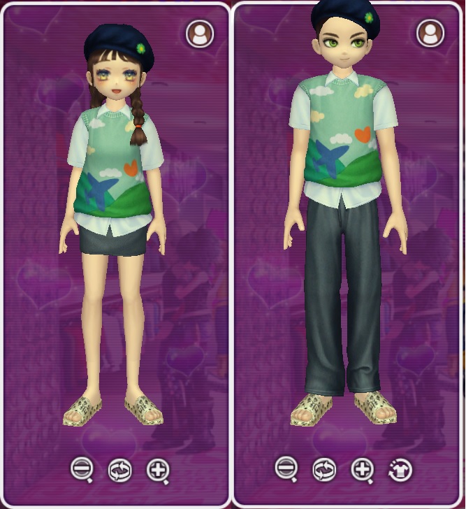 • Female / Male: Hair, Set (Top, Bottom), Shoes