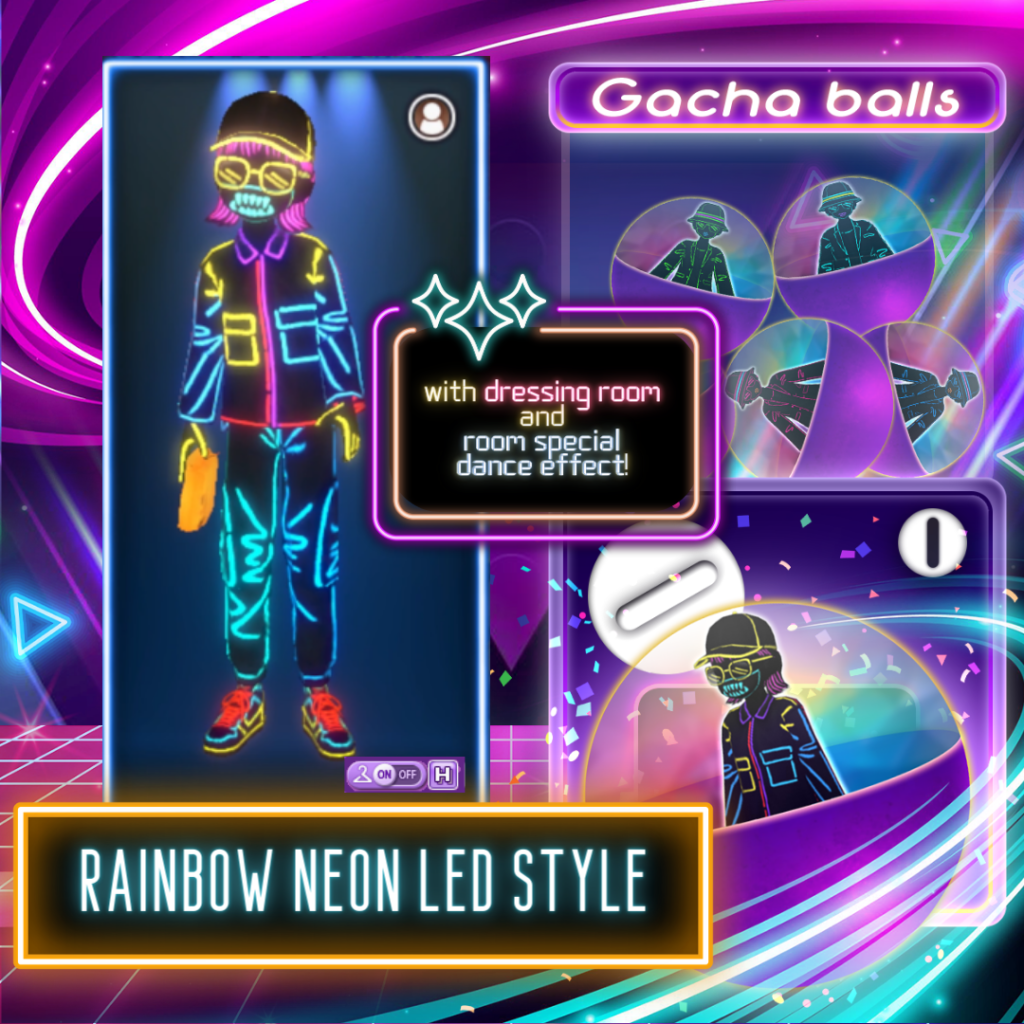 Note: Rainbow Neon LED Style has an exclusive dressing room effect and room special dance effect!