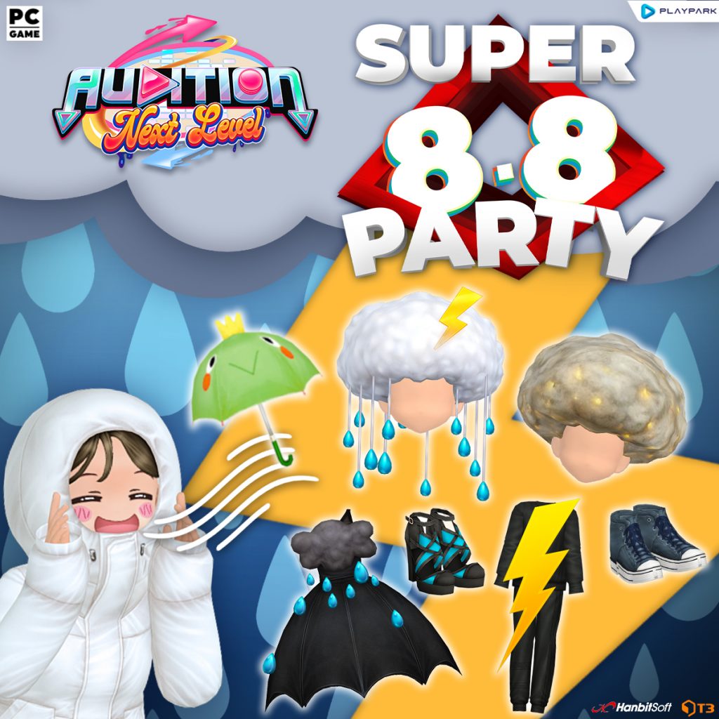 Look up the skies and dance in the rain~ ⛈️☂️ August Super 8.8 Party is storming the dance floor with striking treats for you~ ⚡