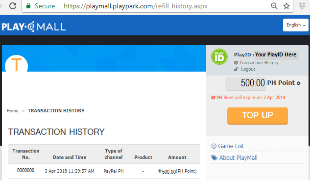Load up your game account by using either PayPal or Playpark Prepaid Cards.